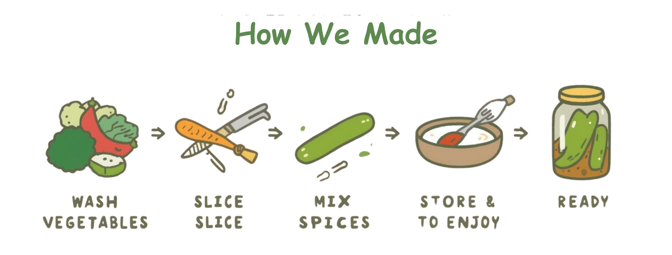 Our pickles are made with fresh, locally sourced ingredients, authentic desi spices, and prepared in small batches to maintain quality and taste. No artificial preservatives are added.